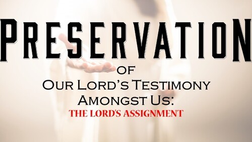 PRESERVATION OF OUR LORD’S TESTIMONY AMONGST US: THE LORD’S ASSIGNMENT